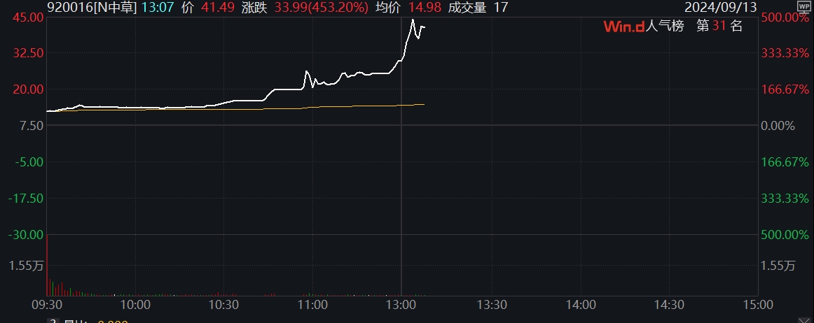 北交所新股中草香料一度涨500%北交所新股中草香料一度涨500%